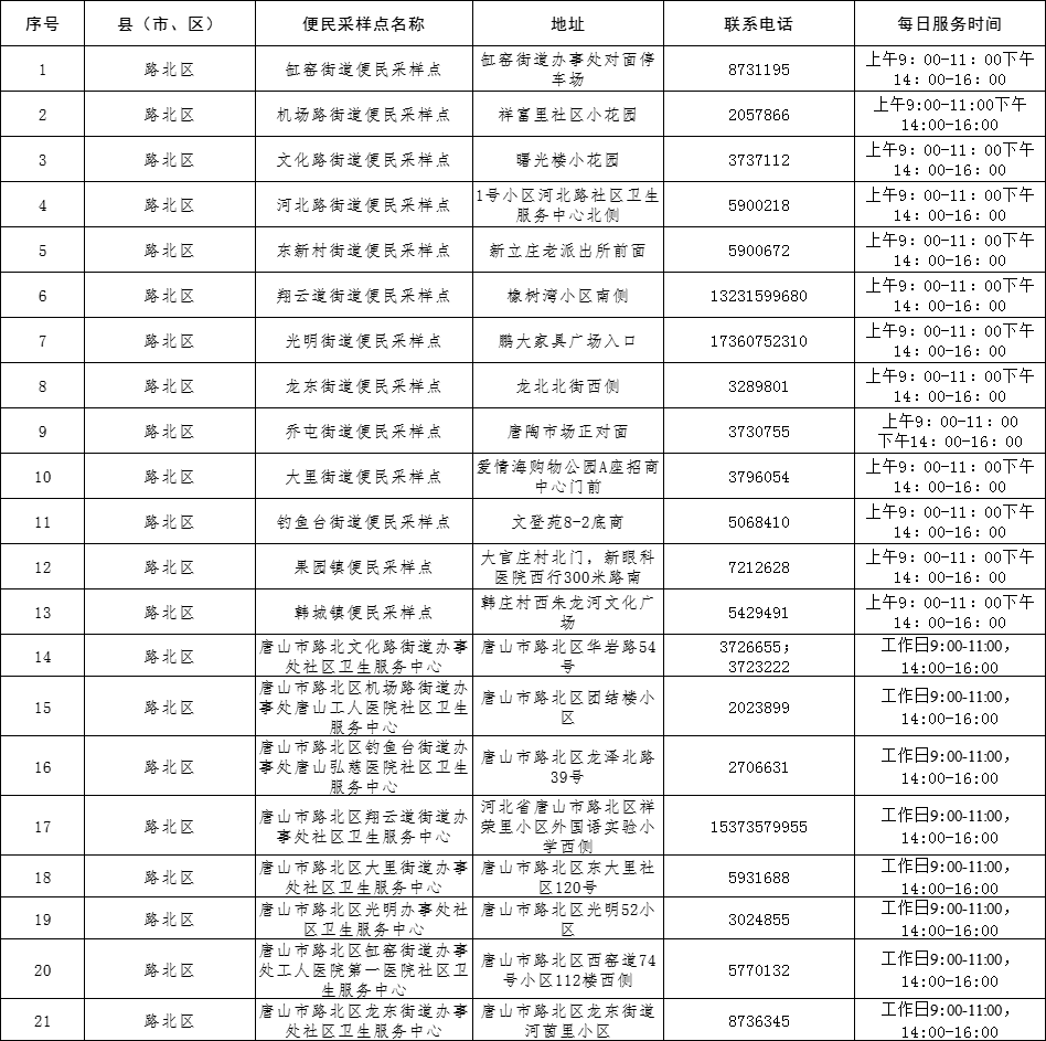 唐山市路北區(qū)新冠肺炎疫情防控 工作總指揮部辦公室 關(guān)于設(shè)置便民核酸采樣點(diǎn)的通告 為方便廣大“愿檢盡檢”群眾就近、便捷的進(jìn)行核酸采樣,最大限度縮短等候時(shí)間,我區(qū)根據(jù)區(qū)域交通、人 ...