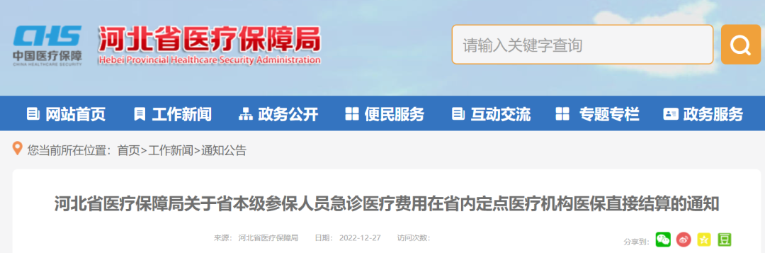 為深化“放管服”改革,切實減輕參保人墊資壓力和跑腿負(fù)擔(dān),昨天(12月27日),河北省醫(yī)療保障局發(fā)布《關(guān)于省本級參保人員急診醫(yī)療費用在省內(nèi)定點醫(yī)療機(jī)構(gòu)醫(yī)保直接結(jié)算的通知》(冀醫(yī)保 ...