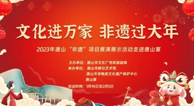 精彩紛呈的非遺展演獨(dú)具特色的非遺美食喜氣祥和的年俗年味 ……新春佳節(jié)即將到來接好這份“文化進(jìn)萬家 非遺過大年”重點(diǎn)活動(dòng)安排在唐山 感受非遺里的中國(guó)年味! 文化進(jìn)萬家 非遺過大年(唐山宴站)在唐山宴一層 ...