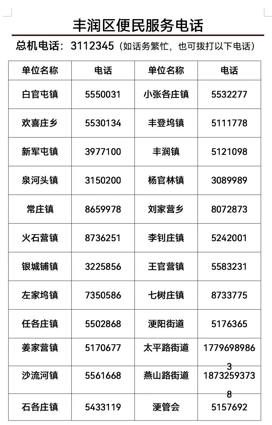 為進(jìn)一步暢通群眾表達(dá)訴求渠道,形成全區(qū)一體化聯(lián)動(dòng)的熱線(xiàn)管理服務(wù)體系,從根本上解決群眾的急難愁盼問(wèn)題,豐潤(rùn)區(qū)開(kāi)通各鄉(xiāng)鎮(zhèn)街道24小時(shí)服務(wù)熱線(xiàn)。歡迎大家按需要撥打,并監(jiān)督我們的服務(wù)! 熱線(xiàn)服務(wù)舉報(bào)電話(huà):31 ...