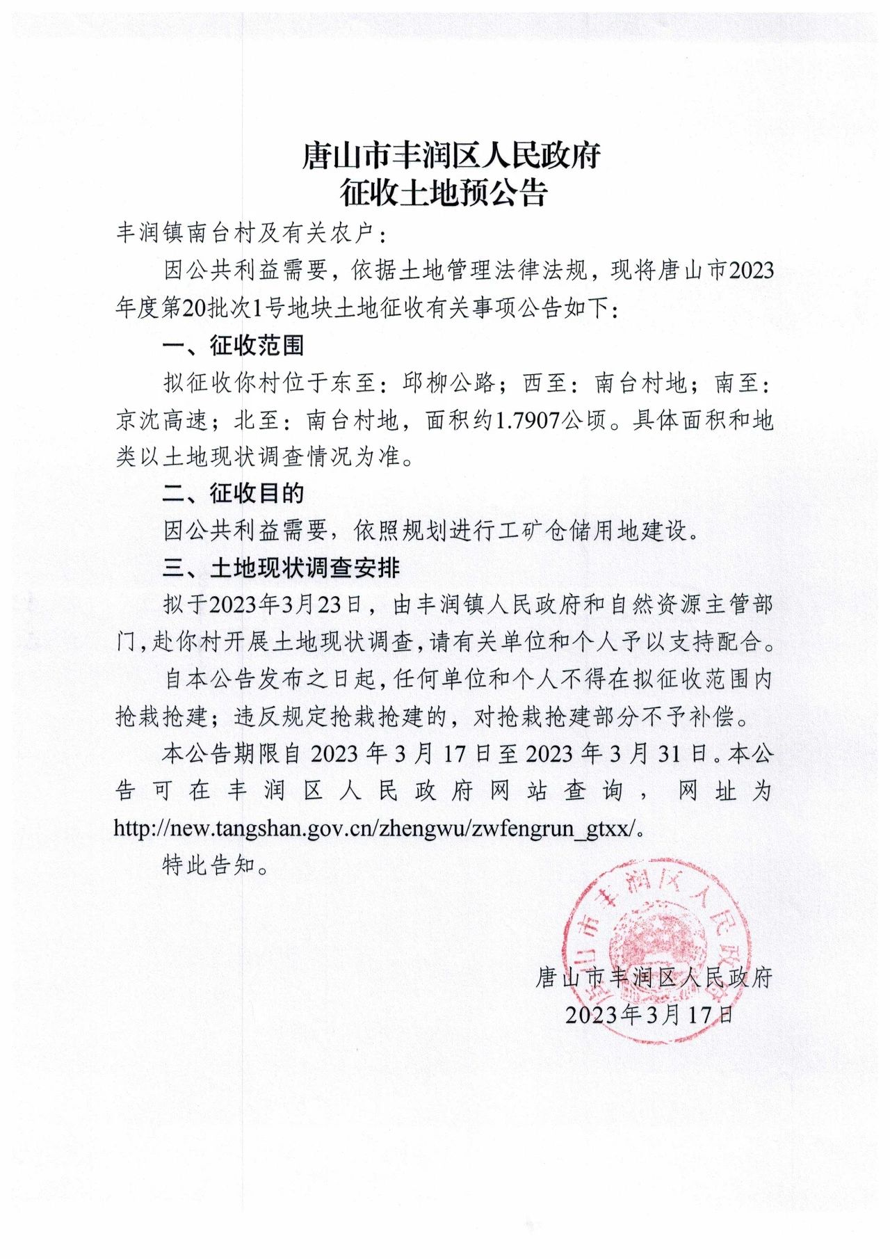 豐潤區(qū)人民政府官網(wǎng)發(fā)布多則征地補償安置公告詳情如下