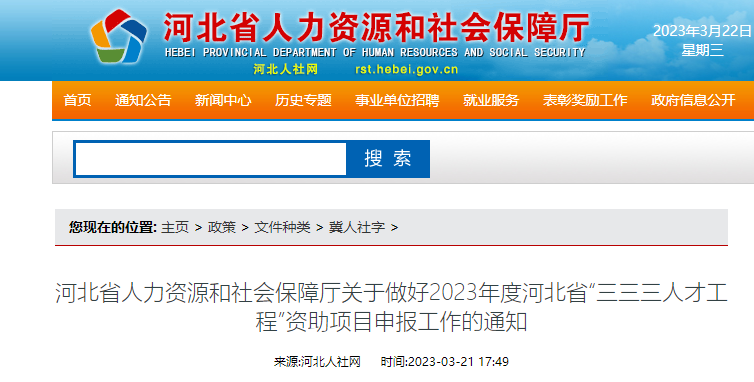 河北省人力資源和社會保障廳關(guān)于做好2023年度河北省“三三三人才工程”資助項目申報工作的通知各市(含定州、辛集市)人力資源社會保障局,雄安新區(qū)黨群工作部,省直有關(guān)部門,中直駐冀單位:為深入貫徹黨的二十 ...