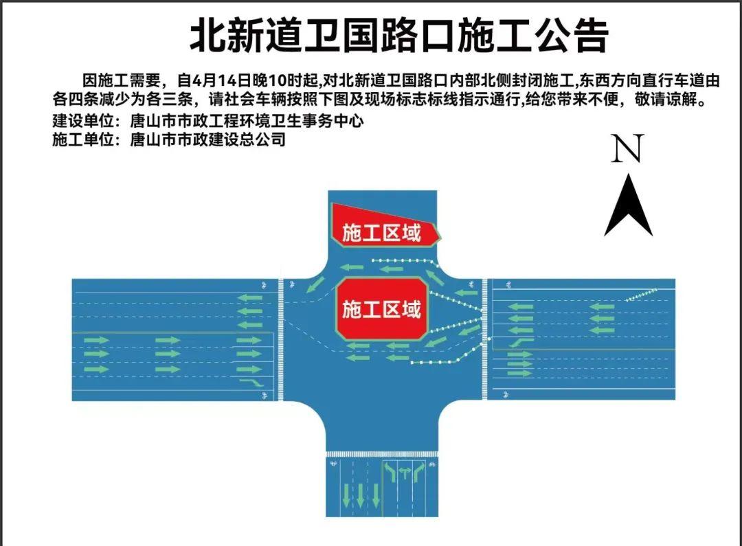 2023年4月13日,唐山市市政工程環(huán)境衛(wèi)生事務(wù)中心、唐山市市政建設(shè)總公司發(fā)布了北新道衛(wèi)國路口施工公告,具體如下:因施工需要,自4月14日晚10時起,對北新道衛(wèi)國路口內(nèi)部北側(cè)封閉施工,東西方向直行車道由各四條 ...