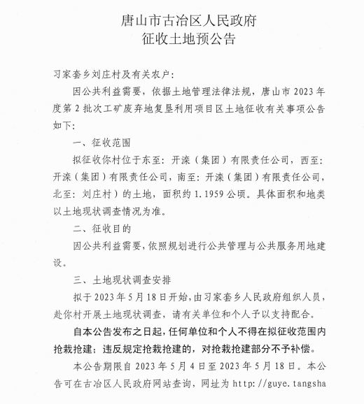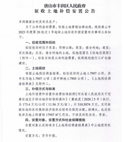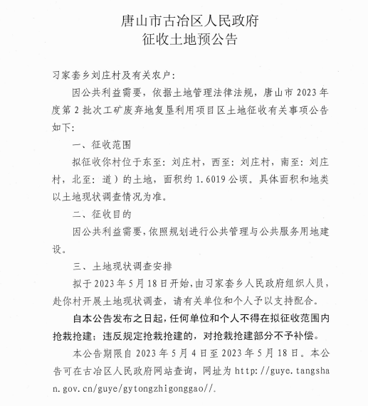 古冶區(qū)人民政府官網(wǎng)發(fā)布征收土地預(yù)公告 來(lái)源:古冶區(qū)人民政府、豐潤(rùn)區(qū)人民政府