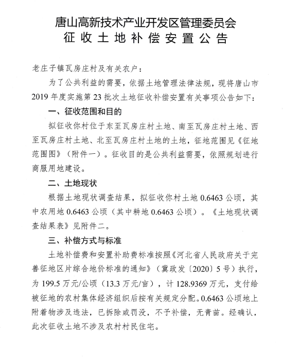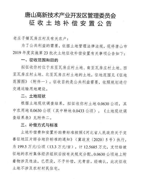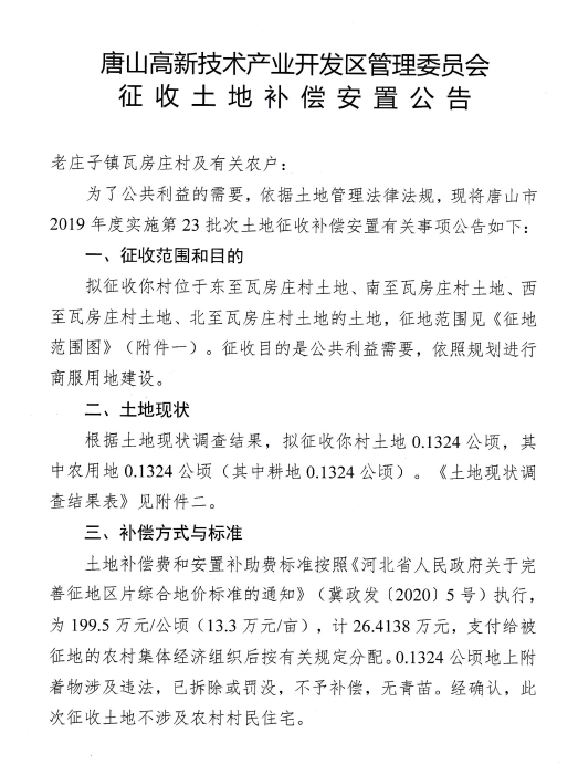 6月2日高新區(qū)人民政府連發(fā)多則征地公告老莊子鎮(zhèn)瓦房莊村一、征收范圍和目的: 擬征收你村位于東至瓦房莊村土地,南至瓦房莊村土地、西至瓦房莊村土地、北至瓦房莊村土地的土地。征收目 ...