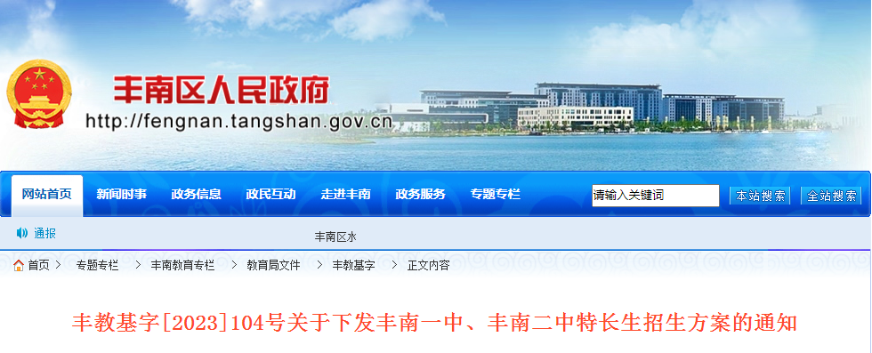 豐南區(qū)人民政府發(fā)布豐教基字[2023]104號關(guān)于下發(fā)豐南一中、豐南二中特長生招生方案的通知 來源:豐南區(qū)人民政府