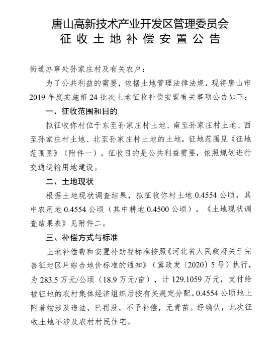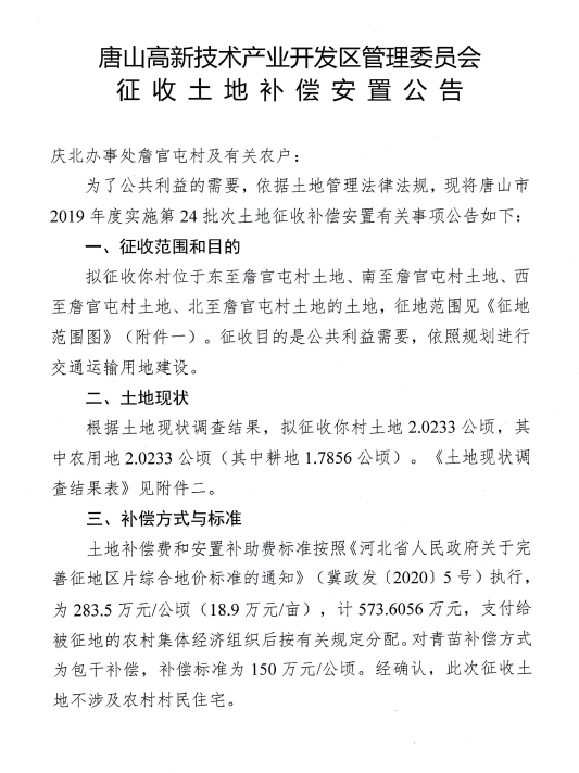 6月6日高新區(qū)人民政府發(fā)布多則征地公告 詹官屯村一、征收范圍和目的: 擬征收你村位于東至詹官屯村土地、南至詹官屯村土地、西至詹官屯村土地、北至詹官屯村土地的土地,征收目的是公 ...
