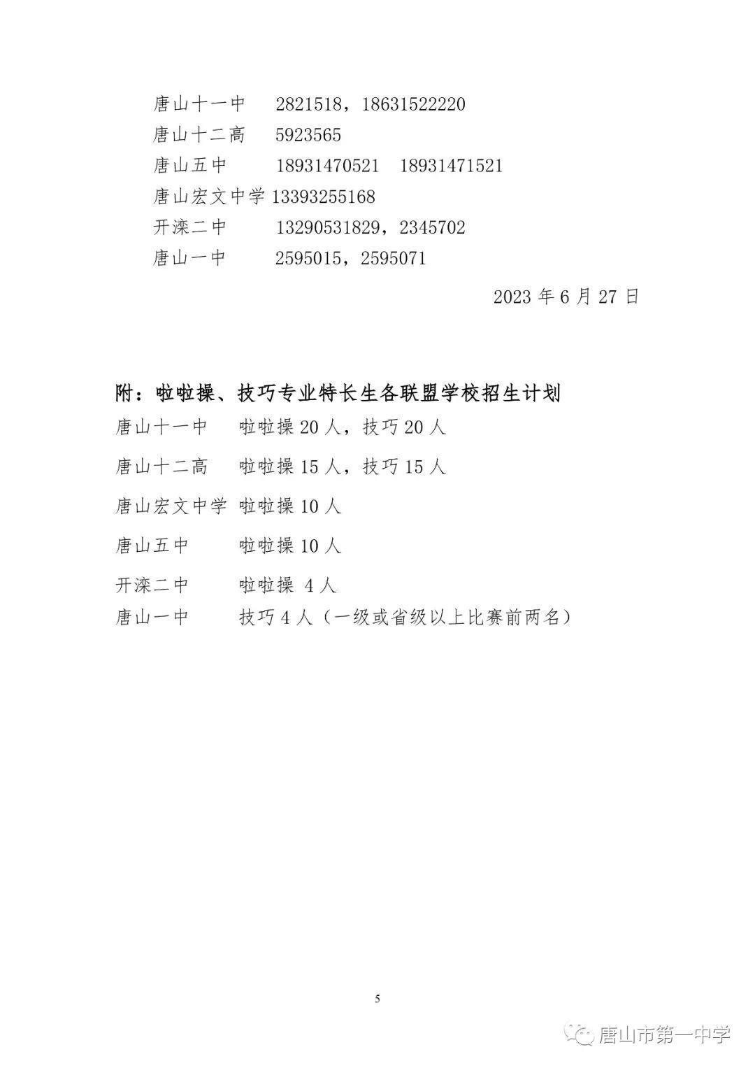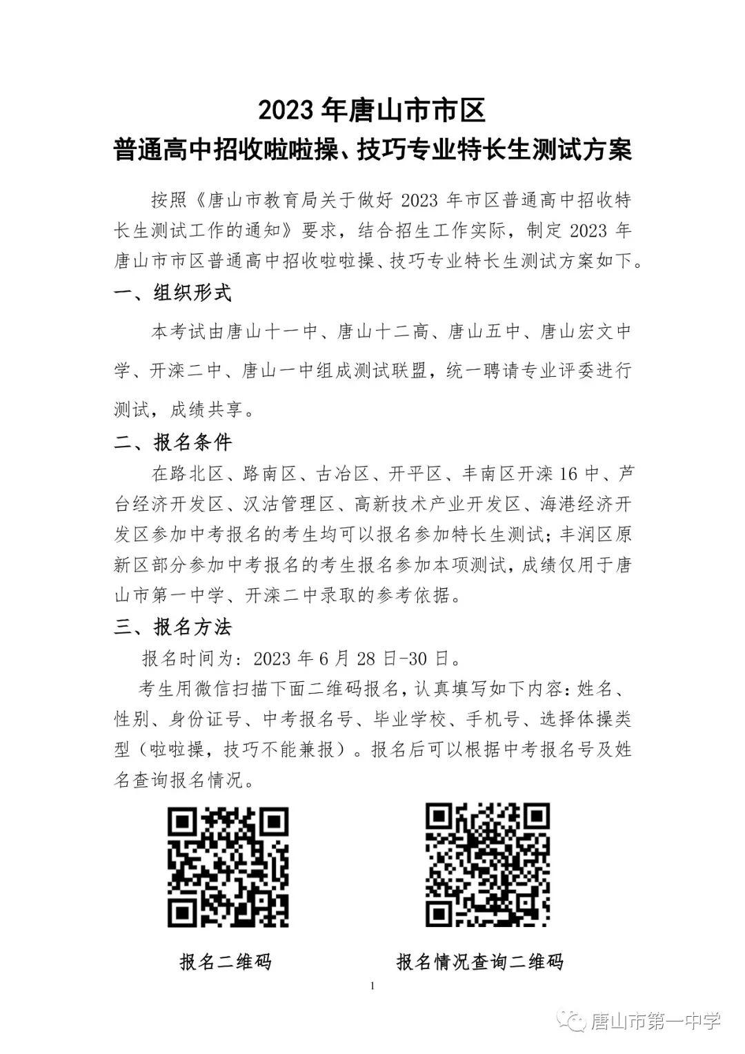 唐山一中2023年面向原市區(qū)招生范圍招收技巧專業(yè)特長(zhǎng)生(男生4人)與唐山十一中、唐山十二高、唐山五中、唐山宏文中學(xué)、開(kāi)灤二中組成測(cè)試聯(lián)盟,具體方案如下。錄取規(guī)則見(jiàn)唐山市教育局中考文件。 來(lái)源: 唐山市第 ...