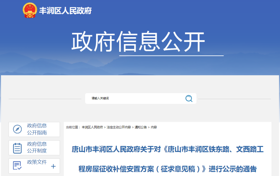 豐潤(rùn)區(qū)人民政府發(fā)布最新公告 唐山市豐潤(rùn)區(qū)人民政府關(guān)于對(duì)《唐山市豐潤(rùn)區(qū)鐵東路、文西路工程房屋征收補(bǔ)償安置方案征求意見(jiàn)稿)》進(jìn)行公示的通告 為切實(shí)提升城市整體形象,加快城區(qū)道 ...