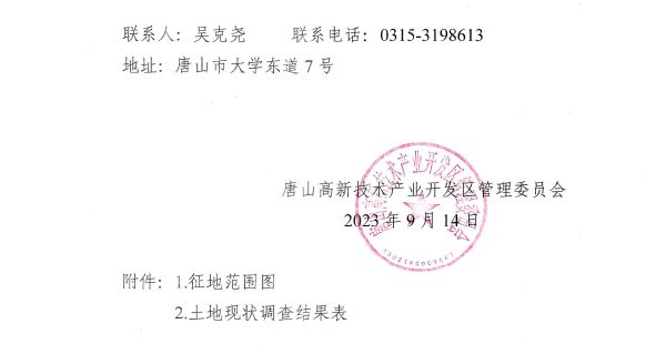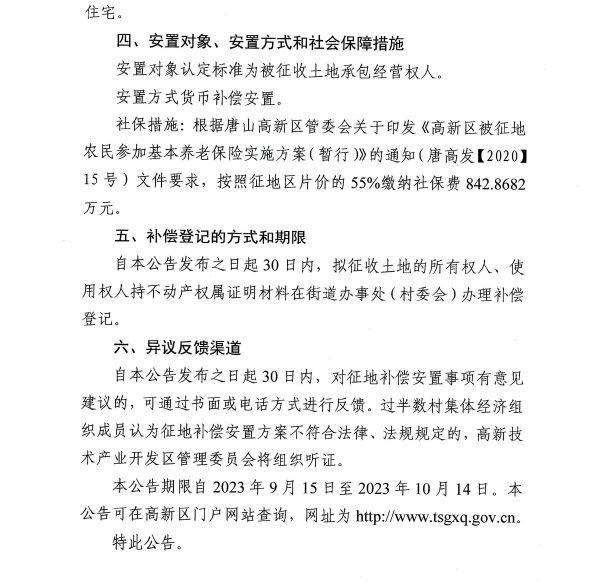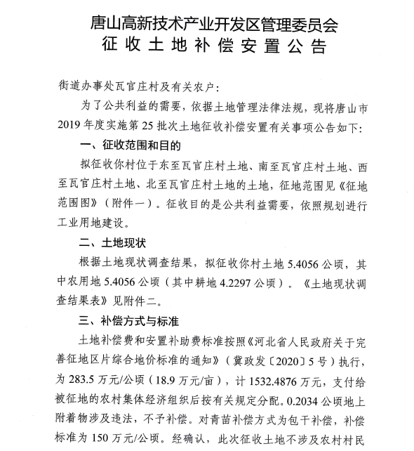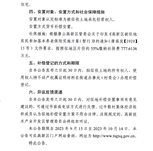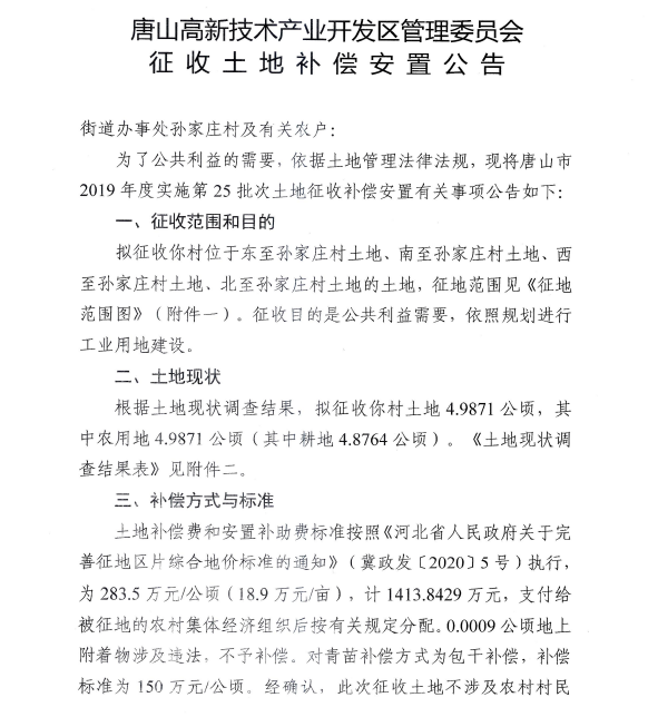 唐山高新技術(shù)產(chǎn)業(yè)開發(fā)區(qū)管理委員會發(fā)布征收土地補償安置公告 來源:唐山高新技術(shù)開發(fā)區(qū)管理委員會