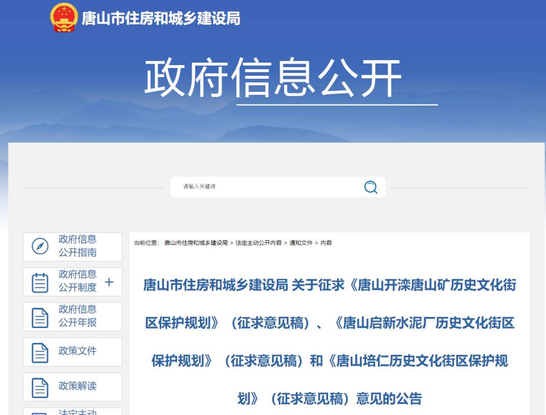 《唐山市住房和城鄉(xiāng)建設(shè)局 關(guān)于征求<唐山開(kāi)灤唐山礦歷史文化街區(qū)保護(hù)規(guī)劃>(征求意見(jiàn)稿)<唐山啟新水泥廠歷史文化街區(qū)保護(hù)規(guī)劃>(征求意見(jiàn)稿)<唐山培仁歷史文化街區(qū)保護(hù)規(guī)劃>(征求意見(jiàn)稿)意見(jiàn)的公告 ...