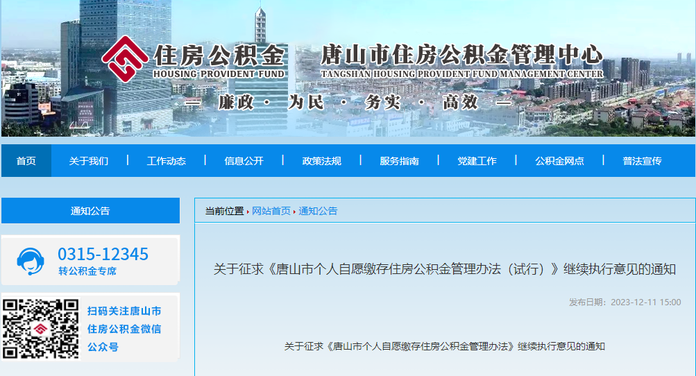 關(guān)于征求《唐山市個(gè)人自愿繳存住房公積金管理辦法》繼續(xù)執(zhí)行意見(jiàn)的通知 《唐山市個(gè)人自愿繳存住房公積金管理辦法(試行)》試行已到期,中心擬正式頒布實(shí)施,現(xiàn)就《 唐山市個(gè)人自愿繳 ...
