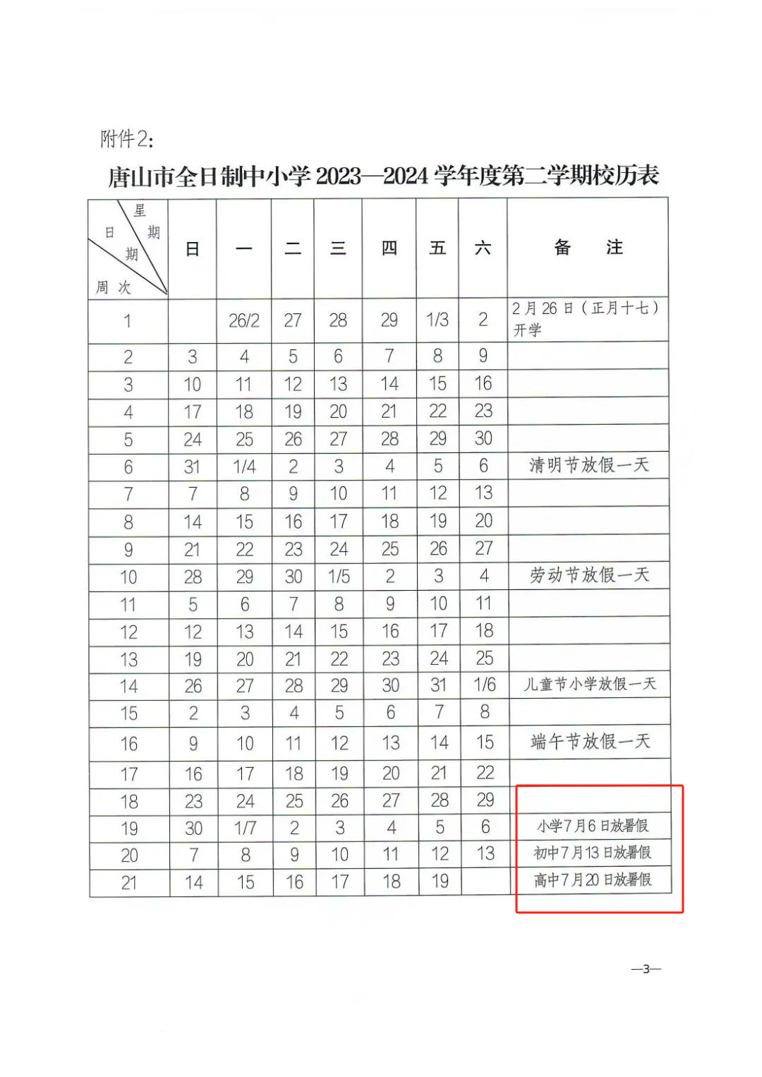 據(jù)唐山市中小學2023-2024學年度校歷唐山市中小學暑假時間安排為 小學從2024年7月6日開始放假 初中從7月13日開始放假 高中學校從7月20日開始放暑假