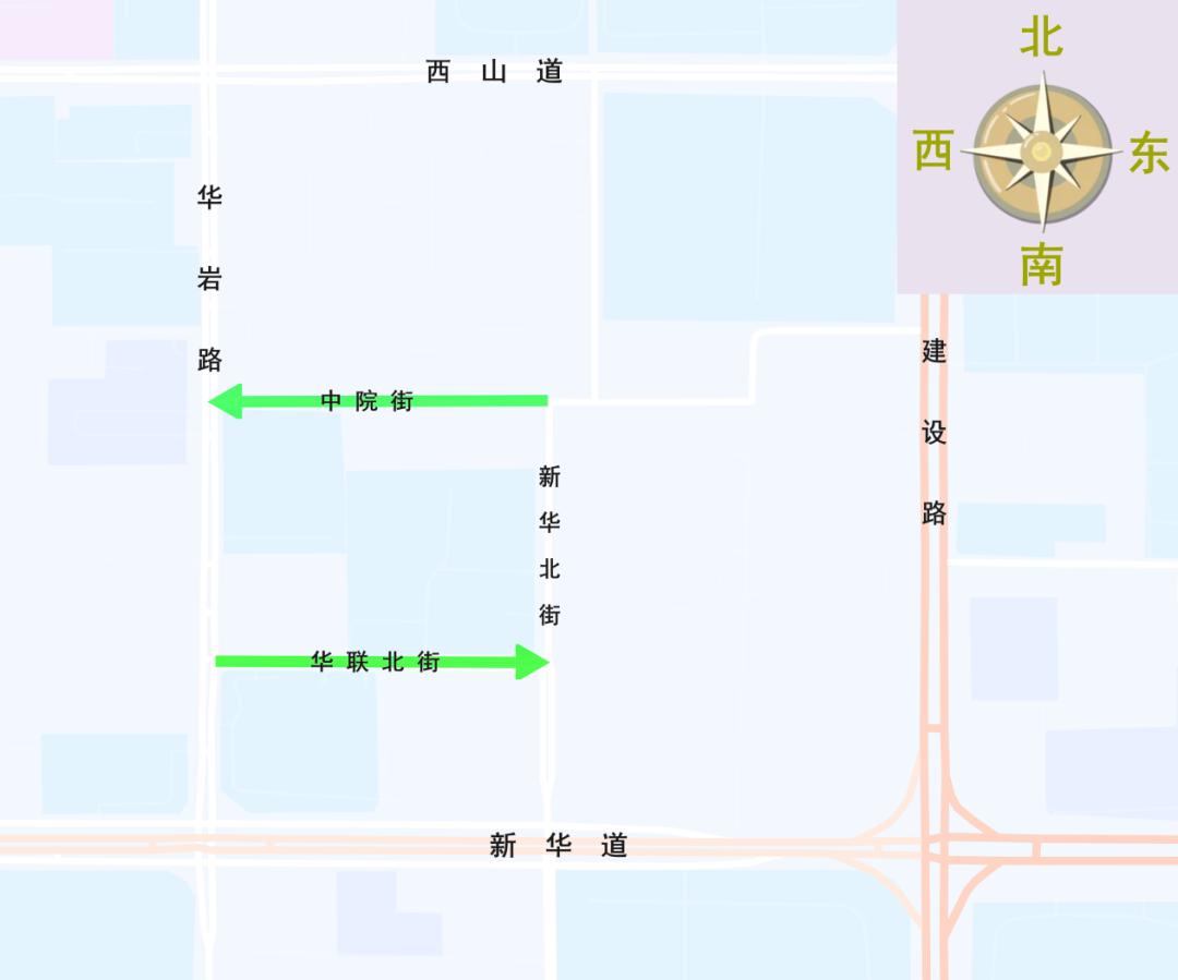 關(guān)于在中院街(新華北街-華巖路)、華聯(lián)北街(華巖路-新華北街)擬實(shí)施機(jī)動(dòng)車單行措施的提示 為進(jìn)一步提高通行效率,減少交通沖突,經(jīng)研究,擬在中院街(新華北街-華巖路)、華聯(lián)北街( ...