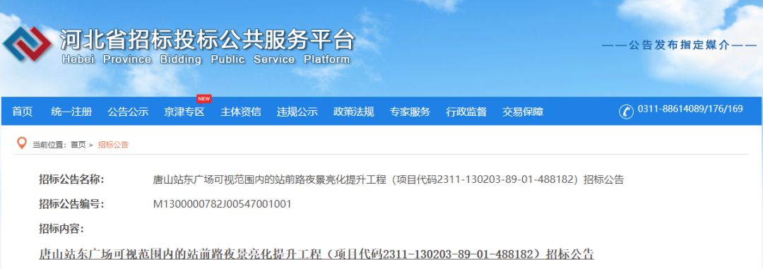 項目名稱:唐山站東廣場可視范圍內(nèi)的站前路夜景亮化提升工程 項目建設(shè)地點(diǎn):唐山市路北區(qū)站前路(北新道-南新道)及光明公園 項目建設(shè)規(guī)模:項目擬對站前路(北新道-南新道)兩側(cè)建筑、綠化等進(jìn)行亮化提升, ...
