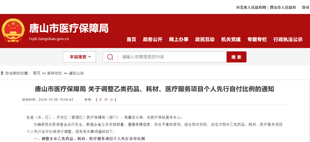 唐山市醫(yī)療保障局 關(guān)于調(diào)整乙類藥品、耗材、醫(yī)療服務(wù)項(xiàng)目個(gè)人先行自付比例的通知 各縣(市、區(qū))、開發(fā)區(qū)(管理區(qū))醫(yī)療保障局(部門),局屬各分局,市醫(yī)療保險(xiǎn)服務(wù)中心:為確保我市醫(yī);疬\(yùn)行安全,根據(jù)全省工 ...