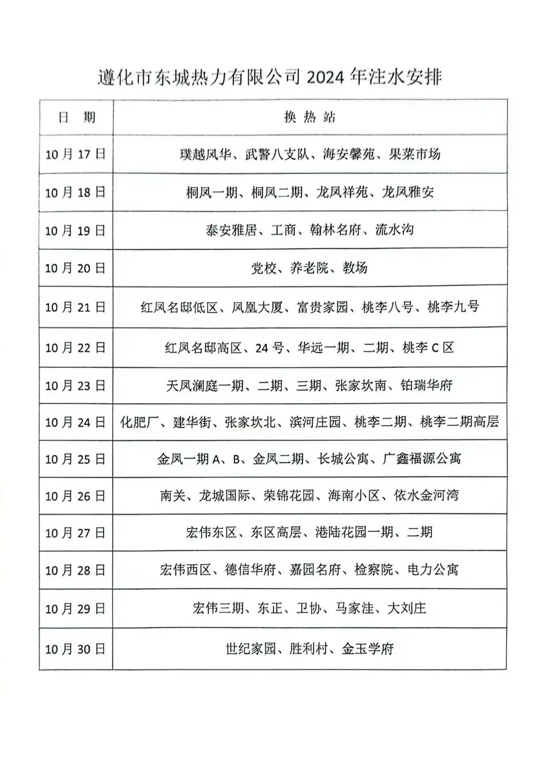 尊敬的各位業(yè)主: 為保證按時正常供暖,我公司于10月17日開始陸續(xù)對所管轄小區(qū)居民供暖用戶進(jìn)行注水試壓,望各位業(yè)主提前做好準(zhǔn)備,并把自家的取暖設(shè)施詳細(xì)檢查一遍,務(wù)必確保家中留人 ...