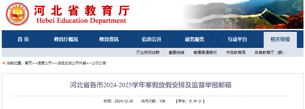 12月30日,中國(guó)河北網(wǎng)站發(fā)布了《河北省各市2024-2025學(xué)年寒假放假安排及監(jiān)督舉報(bào)郵箱》,其中,唐山中小學(xué)寒假放假及開(kāi)學(xué)時(shí)間為↓↓↓ 來(lái)源: 中國(guó)河北