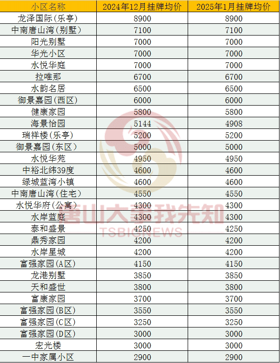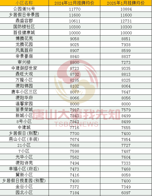 今年開(kāi)年唐山房?jī)r(jià)情況如何2025年1月唐山各縣區(qū)二手房最新房?jī)r(jià)再次提醒: ①以下的房?jī)r(jià)數(shù)據(jù)為唐山二手房房?jī)r(jià) ②數(shù)據(jù)來(lái)源安居客,僅供參考 具體數(shù) ...