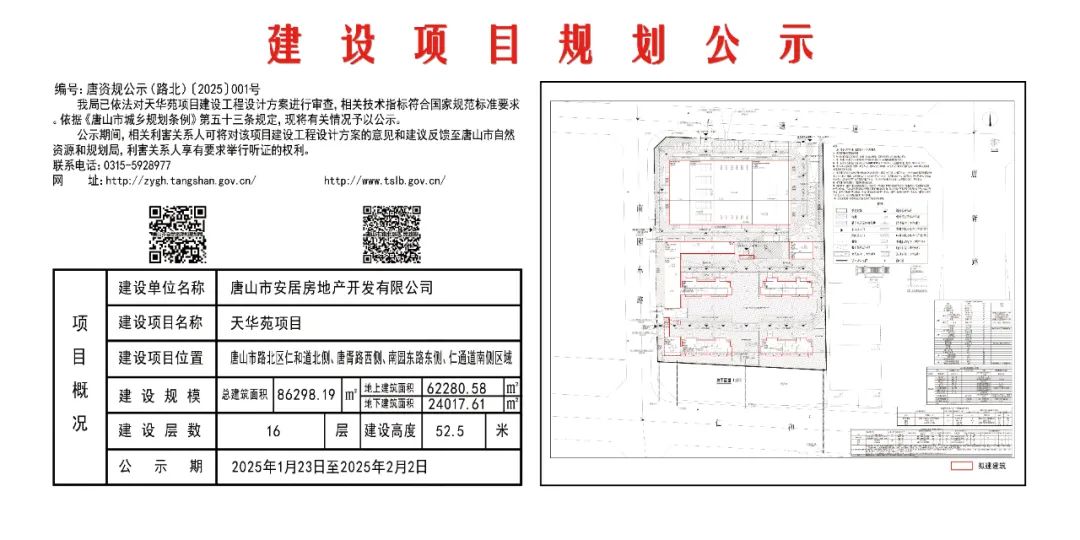 近日,唐山市自然資源和規(guī)劃局發(fā)布《建設(shè)項(xiàng)目規(guī)劃公示(天華苑項(xiàng)目)》 來(lái)源:唐山自然資源和規(guī)劃局
