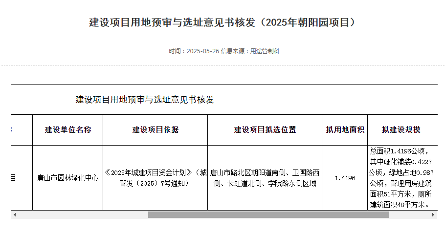 唐山市自然資源規(guī)劃局最新公示,路北區(qū)要新建一個公園——朝陽園! 公園的建設(shè)位置在朝陽道南側(cè),衛(wèi)國路西側(cè)、長虹道北側(cè)、學(xué)院路東側(cè)的這塊區(qū)域。 新公園建成后,將為周圍市民提供更好的配套設(shè)施,提供一個 ...