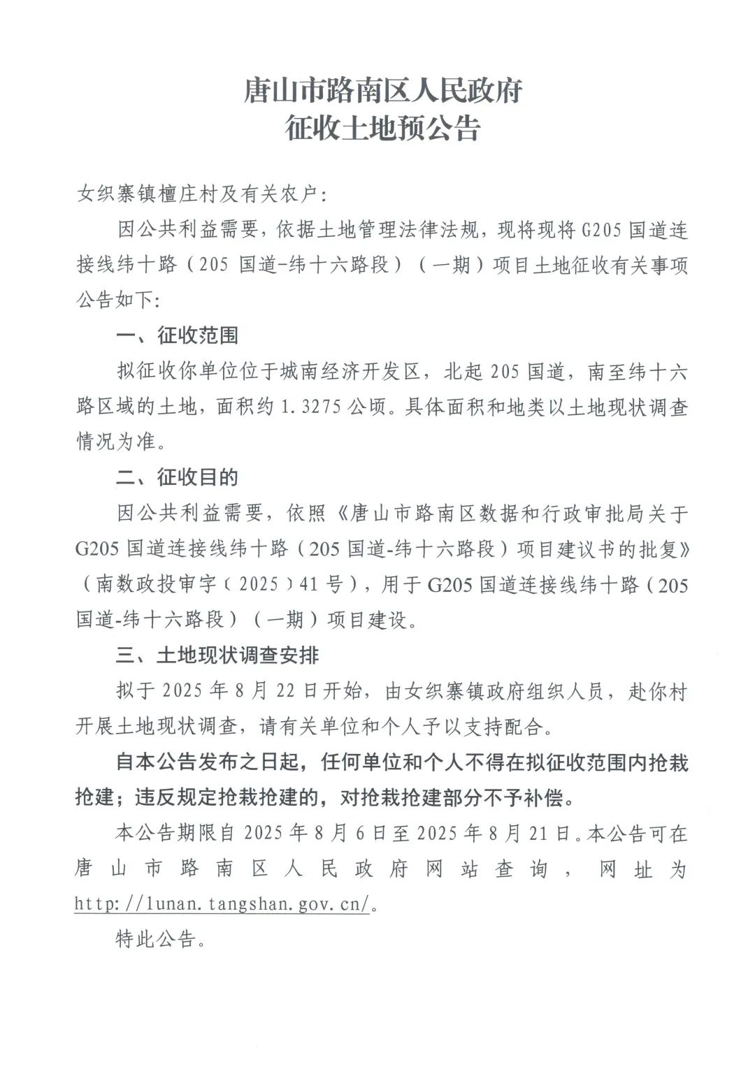 唐山路南區(qū)人民政府發(fā)布最新征地公告